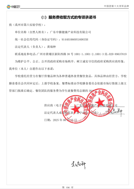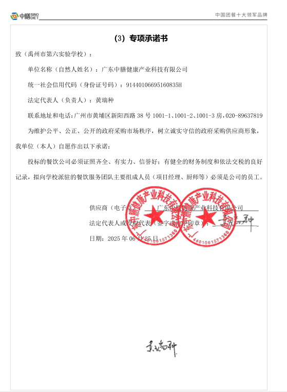 YZCG-DLG2025028 | 禹州市第六实验学校餐饮服务项目 | 广东中膳健康产业科技有限公司 | 广州市黄埔区新阳西路 38 号 1001-1、1001-2、1001-3 房 | ||||