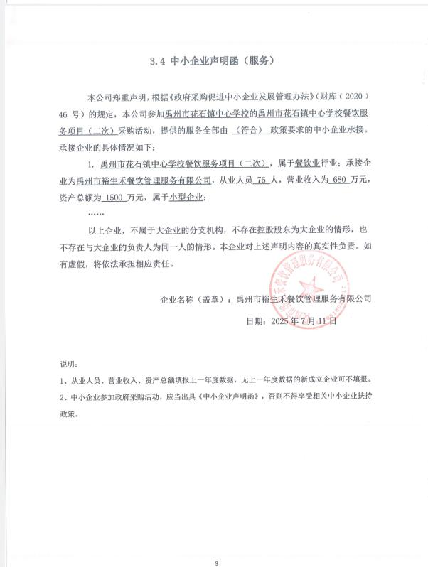 1 | 禹州市裕生禾餐饮管理服务有限公司 | 91.6 | 小型 | 1 |