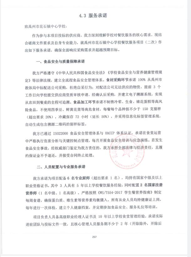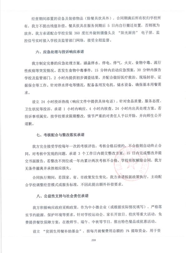 4 | 河南盛鲜禾餐饮管理有限公司 | 服务期1年(期满考核,合格可以续约,最多可续约四次),每年对服务商考核,考核合格后,续约合同;考核不合格,自动终止合同。如合同执行期间与国家、省市政策或规定不符,按国家、省市相应政策执行 | 密封完好 |