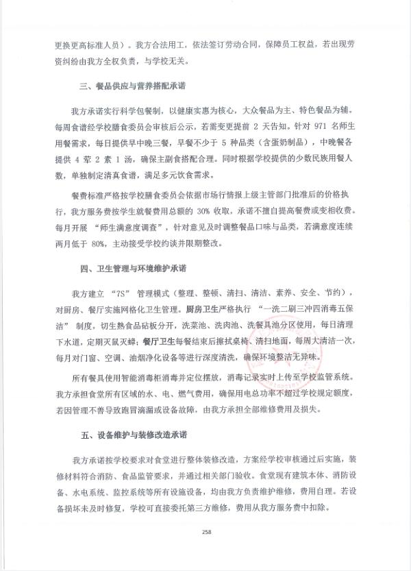 3 | 河南润德餐饮管理有限公司 | 服务期1年(期满考核,合格可以续约,最多可续约四次),每年对服务商考核,考核合格后,续约合同;考核不合格,自动终止合同。如合同执行期间与国家、省市政策或规定不符,按国家、省市相应政策执行 | 密封完好 |