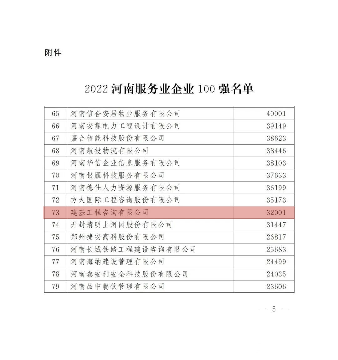 2022年度公司再次进入全国监理行业50强,首次进入2022年河南服务业企业100强,行业影响力进一步提升。