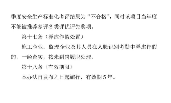 施工企业、监理企业及其人员在人脸识别考勤中弄虚作假的,一经查实,按未到岗履职处理。