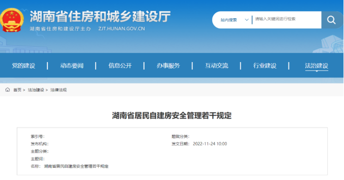 11月23日下午,湖南省第十三届人民代表大会常务委员会第三十四次会议表决通过《湖南省居民自建房安全管理若干规定》(以下简称《规定》),将于2023年1月1日起施行。